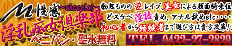 男性のアナルへのバイブ責めやイヤらしい言葉による淫語責め、希望があれば聖水や唾液の口移し、即クンニなども可能な変態さんやM男さんの為のお店です!痴女に興味のある方やSMまでは怖いと思う貴方の為の秘密の倶楽部です。是非希望の変態プレイを痴女達にお伝え下さい!非日常の空間と時間をお過ごし下さい!!